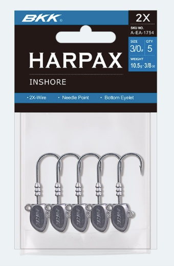 The Harpax Inshore boasts a short shank 2X-wire HD hook equipped with a corrosion-resistant Bright-Tin coating for saltwater use. Super sharp, the Harpax features a sticky straight point for immediate hook-ups. The bait keeper is a split design providing superior grip on plastics of all kinds, particularly the super soft 10X material where you need it most giving the angler the confidence to cast hard and work the plastic aggressively.