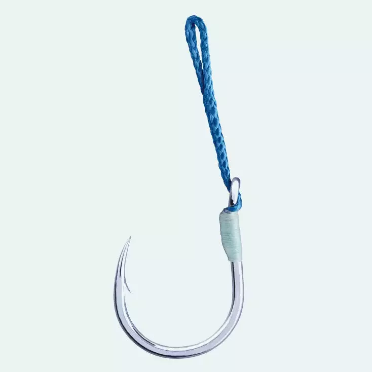 This assist hook comes pre-tied with a high-quality assist cord that consists of 16 braided strands tightly woven together to achieve the required strength and flexibility. The glow binding thread on the hook enhances the attractiveness stimulating strikes even in low visibility conditions.