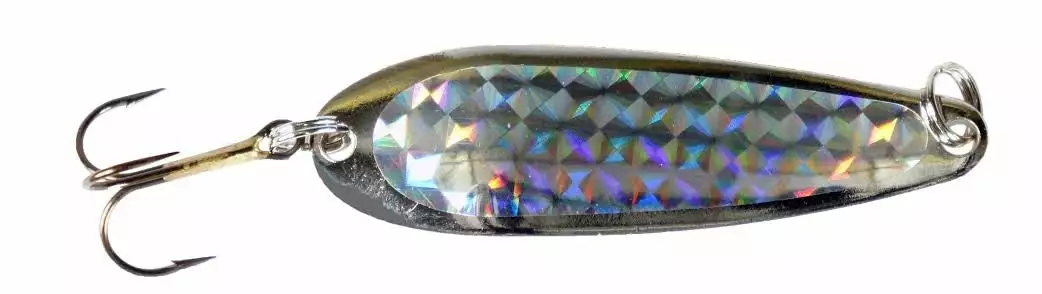 The Sliced Sparkler has a holographic sparkle finish on one face of the lure, giving a multi-directional flash when seen from below the surface.
