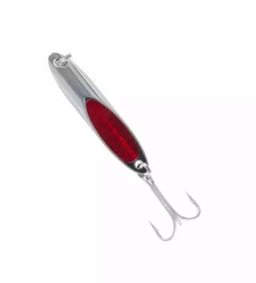 This straight running chrome lure has extra large sides for extra flash. The standard Sliced comes with a blood red teaser attached to the rear fish ring with two highly reflective chrome surfaces. The Sliced Sparkler has a holographic sparkle finish on one face of the lure, giving a multi directional flash when seen from below the surface.