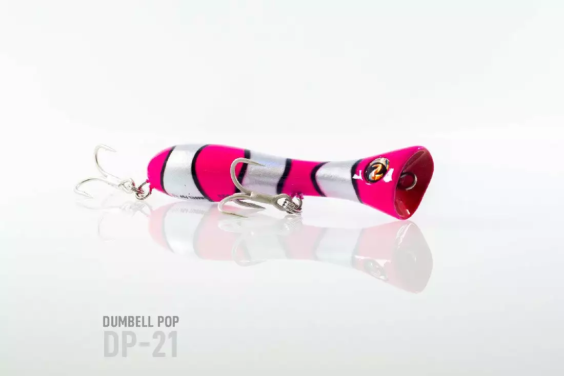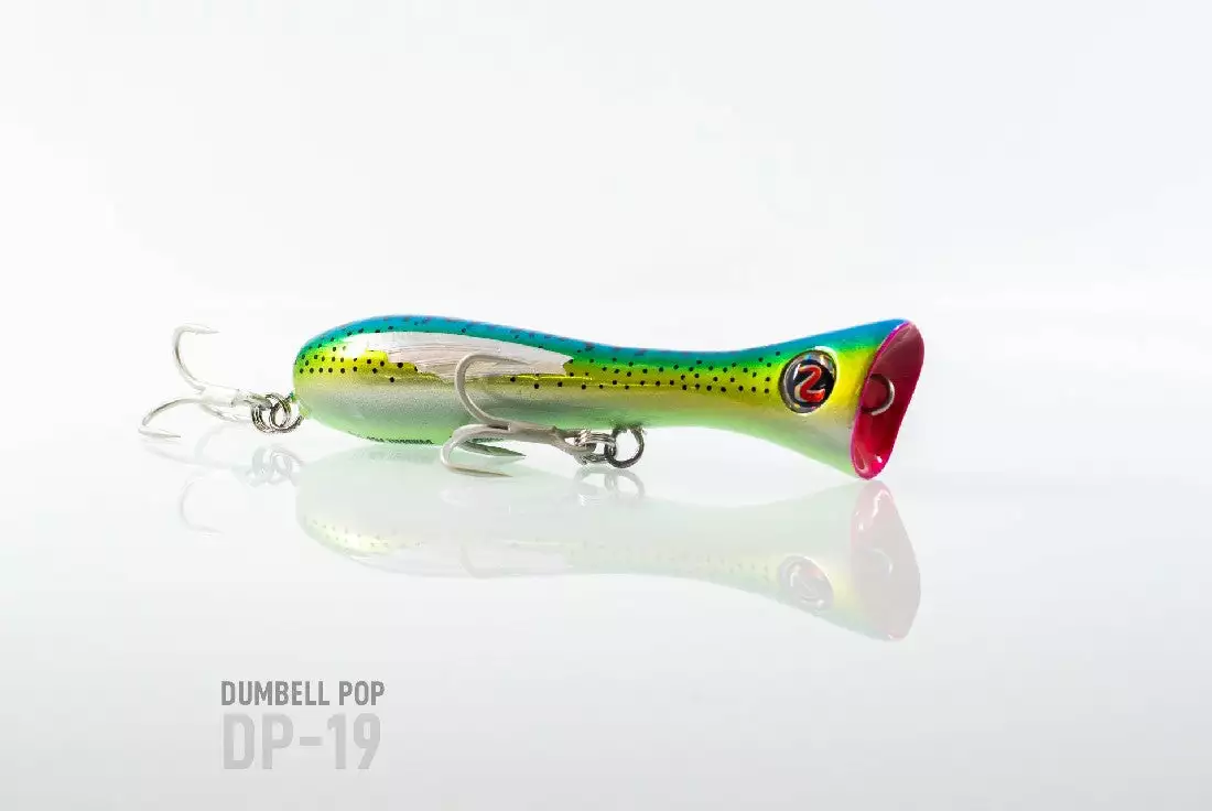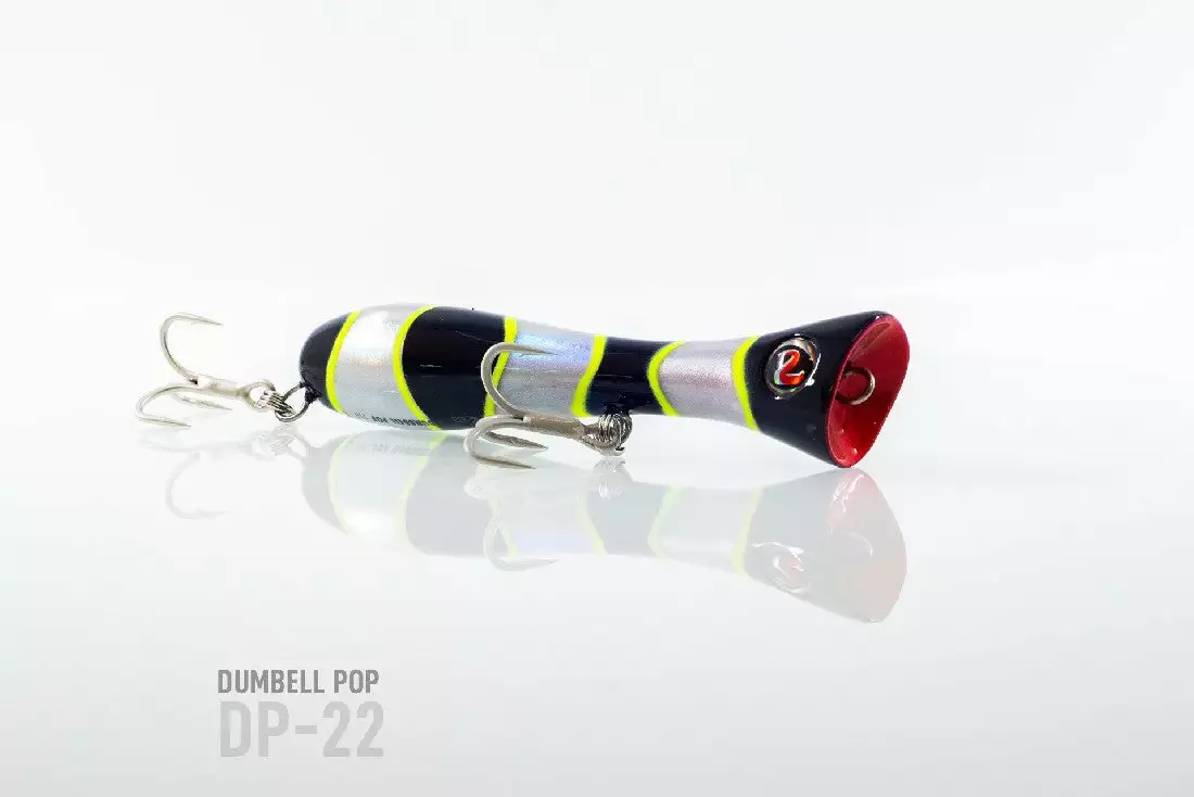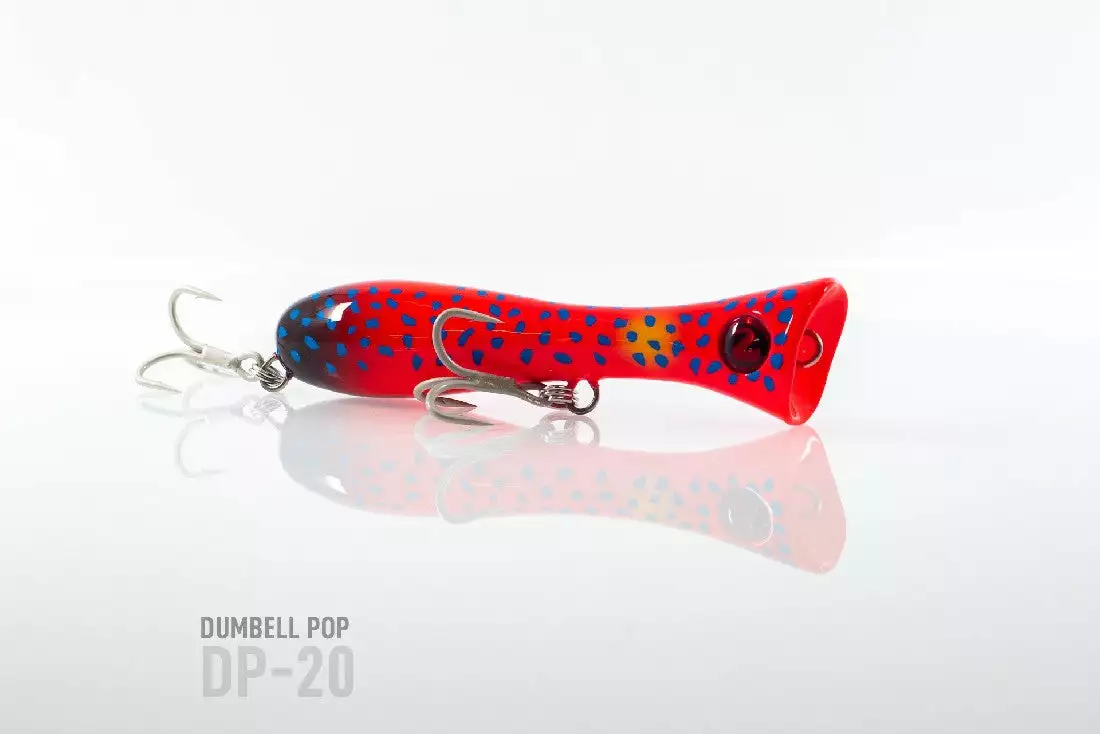 King of the poppers, the Dumbbell is the most exciting range of surface bloopers to hit our market, fish with one and you will know why. Weighted with casting distance in mind, the popper is constructed with hardwood / hard plastic, achieving excellent buoyancy and as a big fish popper it is fitted with VMC trebles and extra heavy duty split rings.
