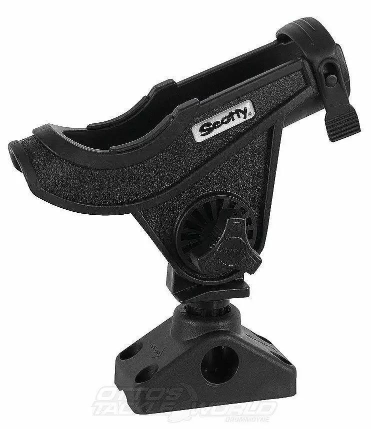 - The side mounted adjustment flange leaves the bottom of the rod holder open to accommodate trigger grip